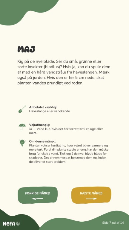 Få en gratis plejeguide, der er tilpasset netop din plante - baseret på dens alder og hvordan den er plantet.